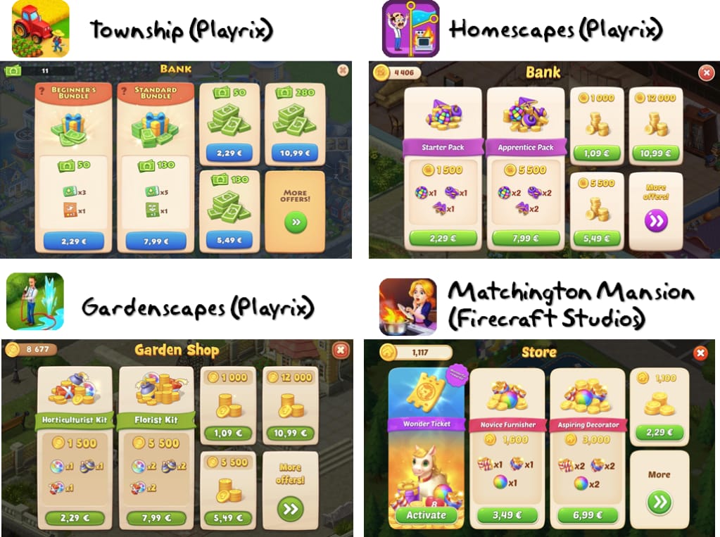 These purchases often appear as Skins, Coins or Gems, or Limited-time offers.